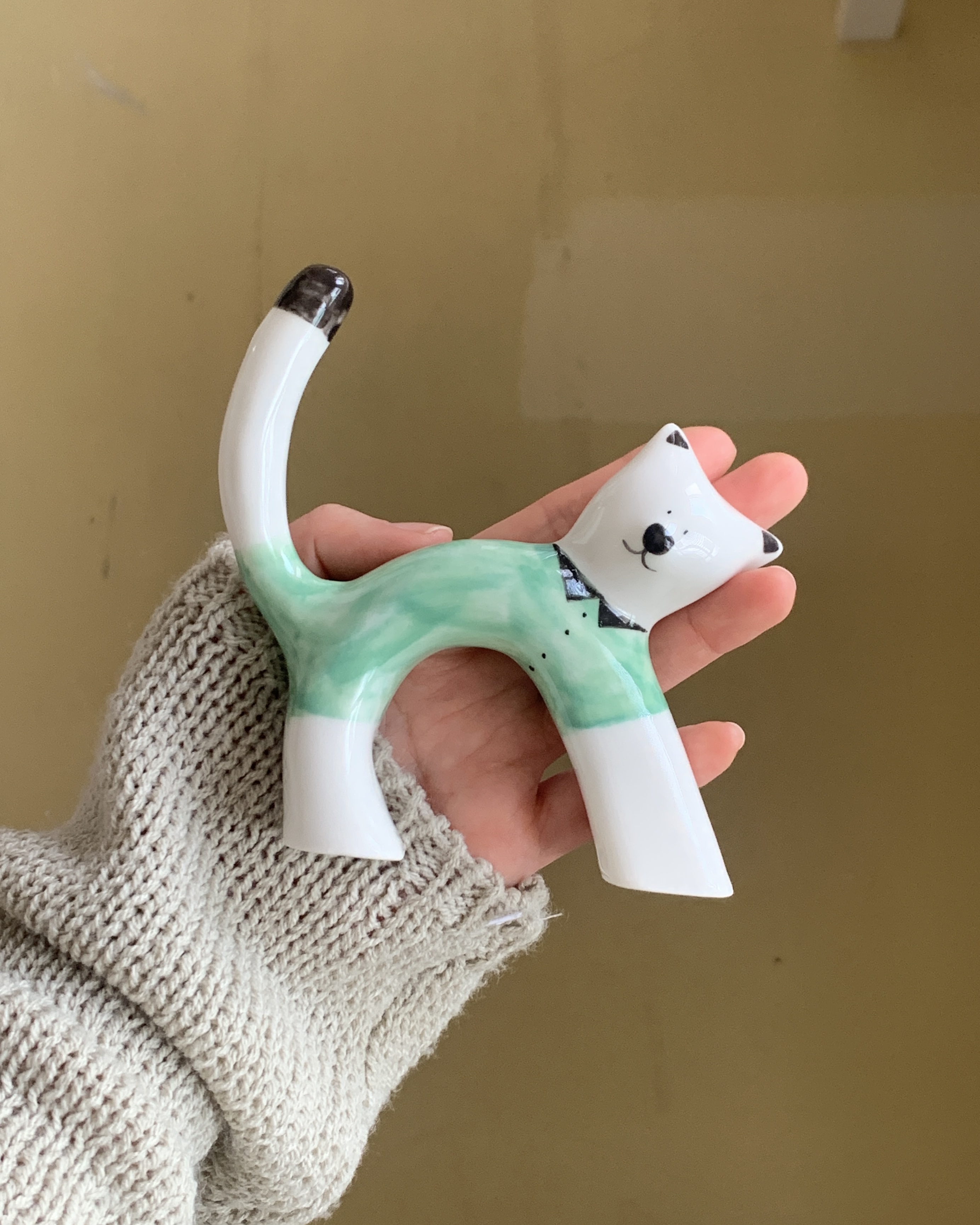 Green button-up collar tee meow holder